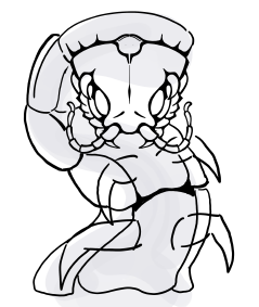 Al momento de conceptualizar el diseño final buscamos reflejar una personalidad fuerte y con presencia sin llegar a la hostilidad, utilizando el insecto escolopendra el cual es un depredador alfa, lo que significa que no tiene depredadores naturales
