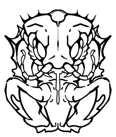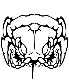 la cabeza es el elemento más representativo y de donde partiría la evolución del diseño, La creación de diferentes bocetos fue crucial para entender como debería ser el diseño final, resaltando aspectos principales siendo el veneno un elemento que ayudaría a resaltar el diseño final